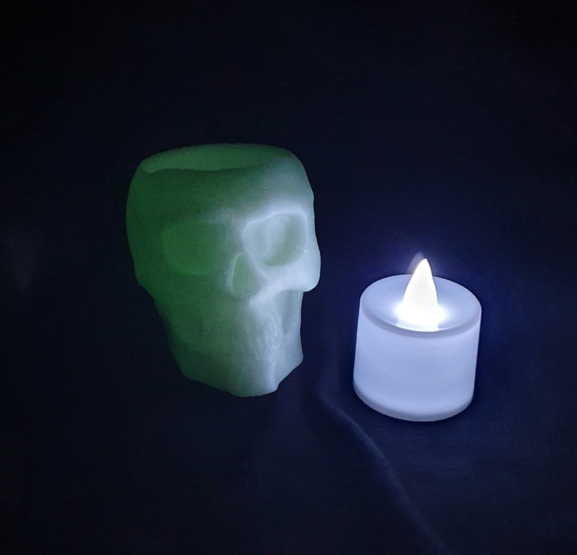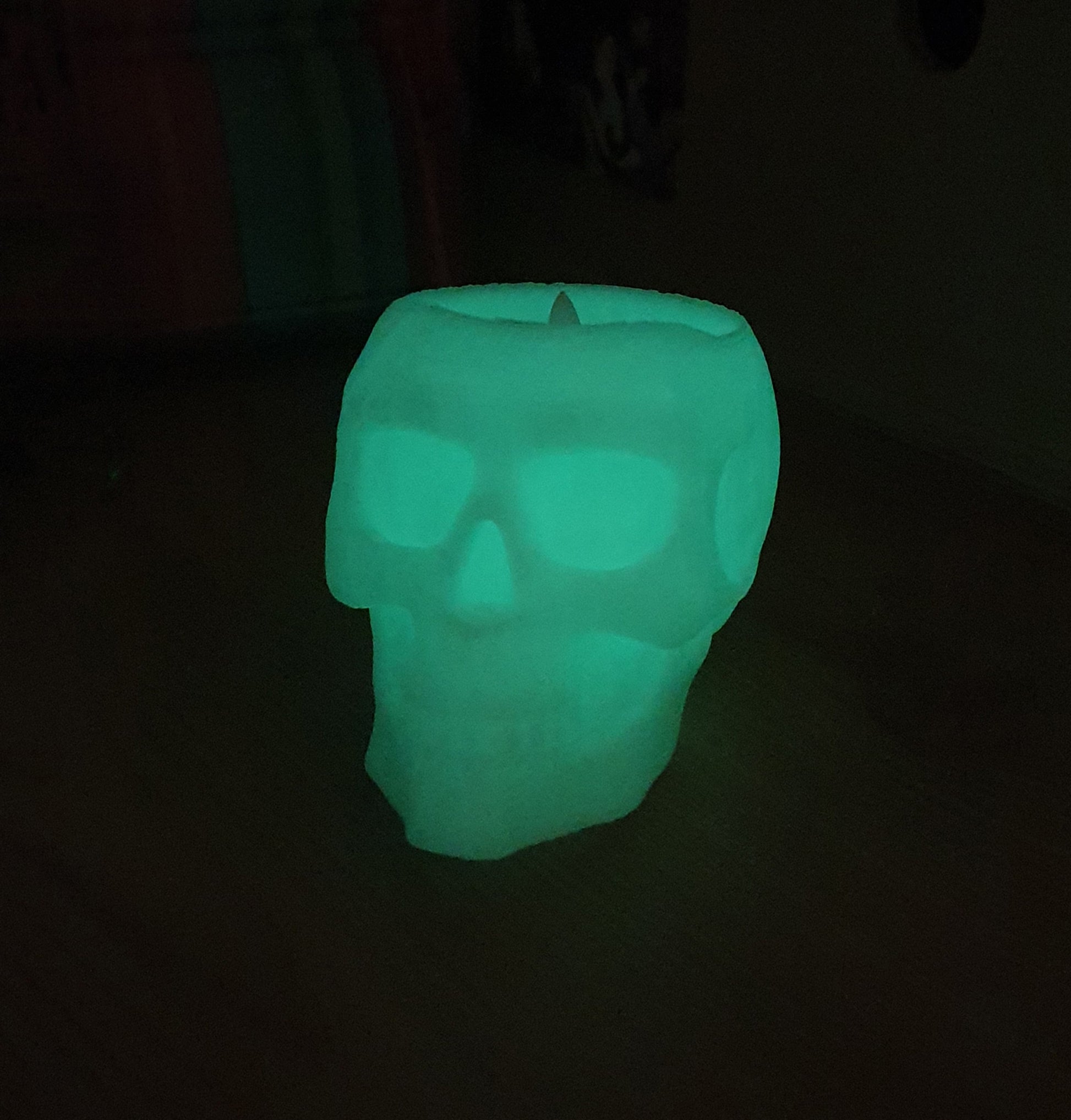 Our glow in the dark skull candle, you can still see it after the lights go out! Personalised in a box makes the perfect gift.