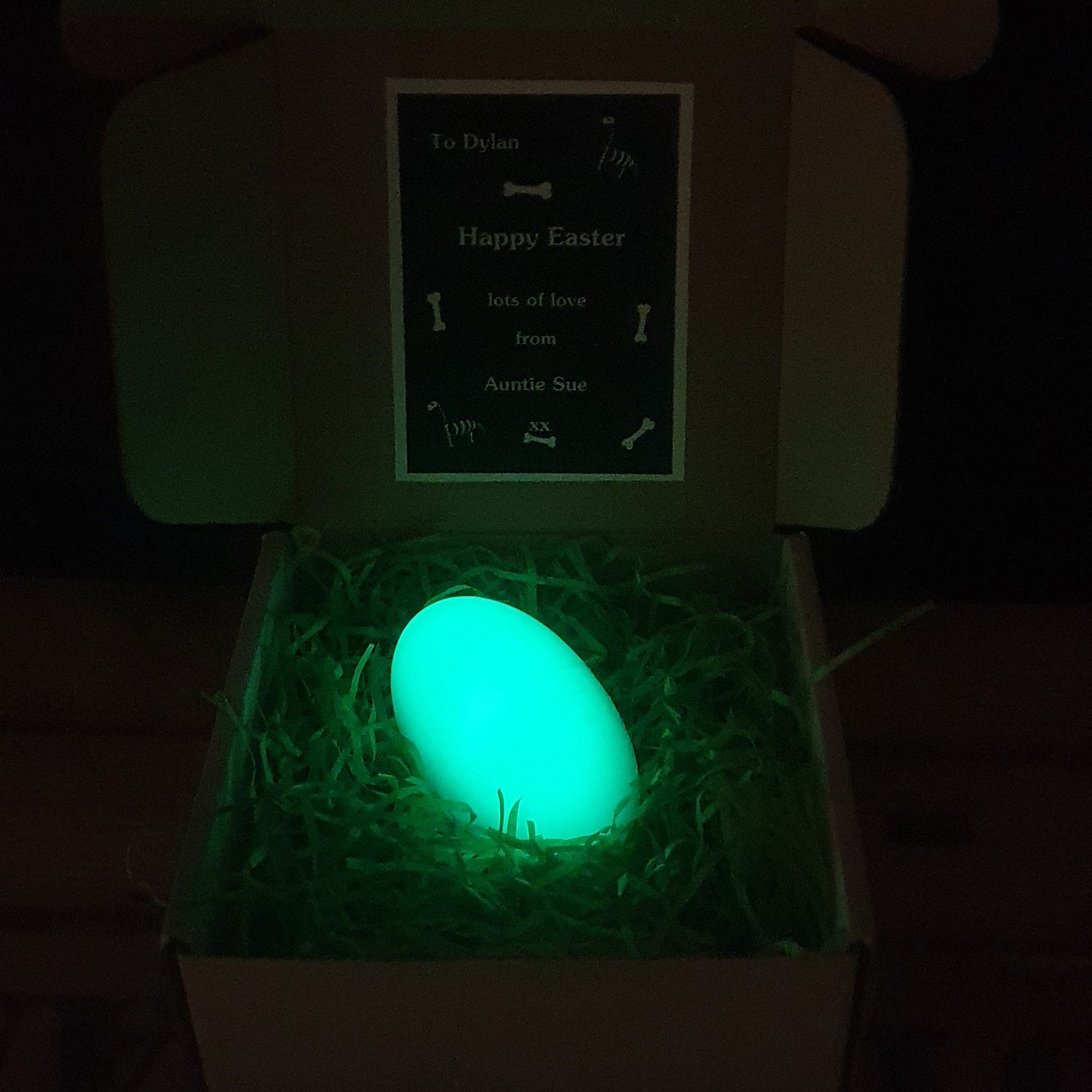 Hide during the day and see it glow by night for prehistorically magical Easter!
