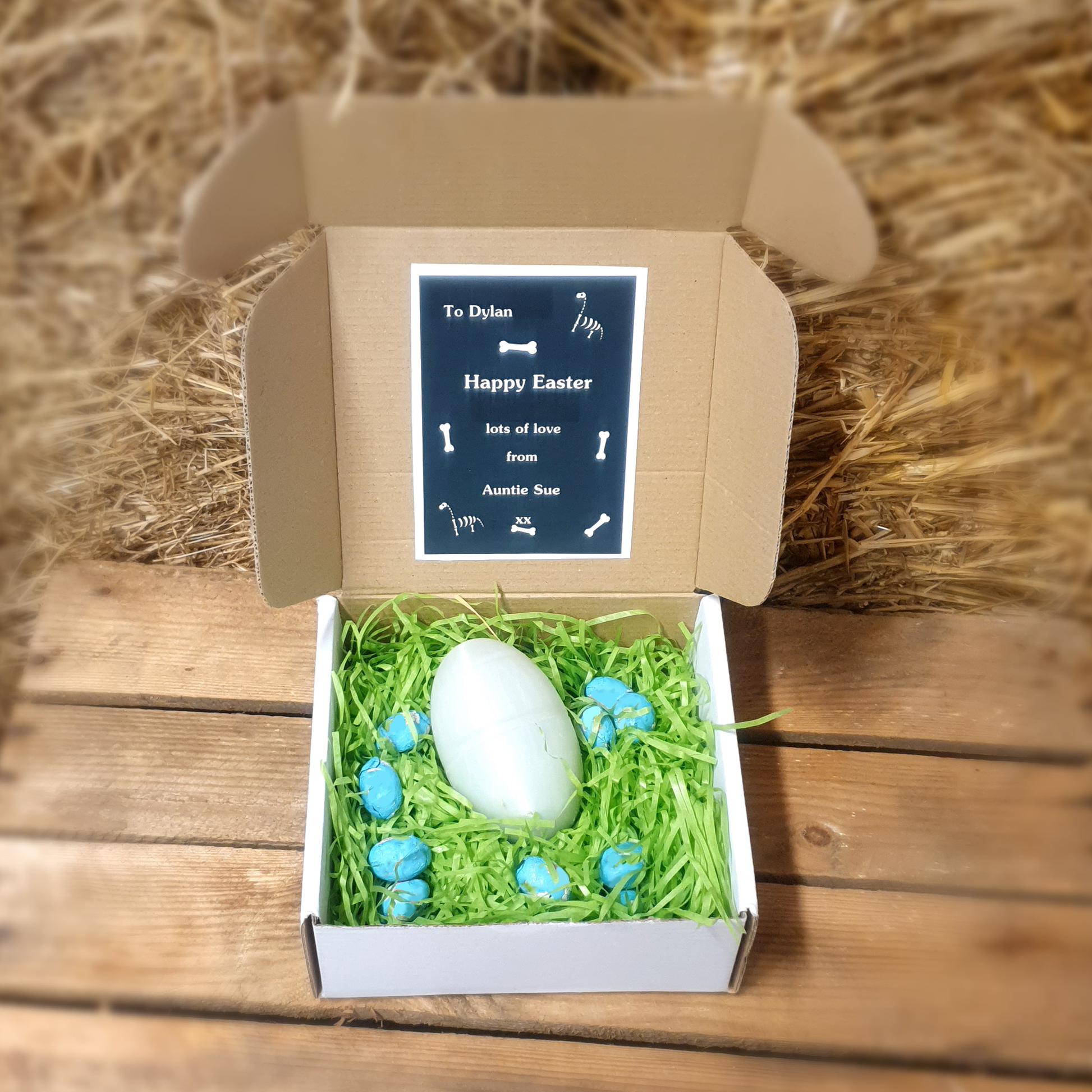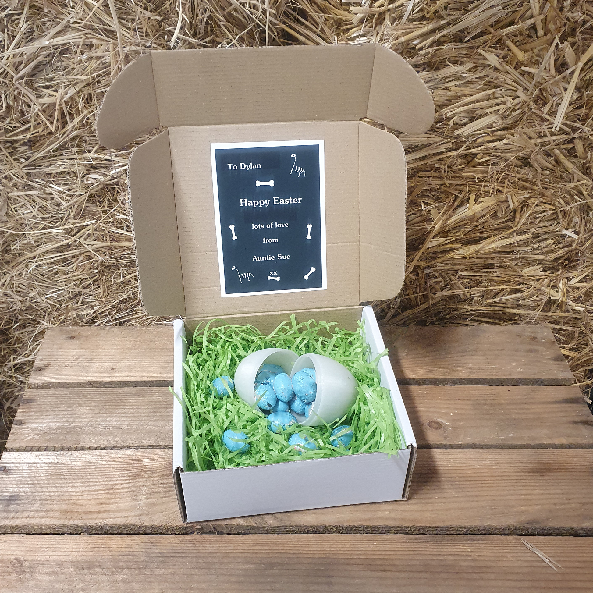 Inside this unique glowing egg you will discover a selection of tasty chocolate mini eggs and a special UV Torch. You can also include a personal message inside the box.